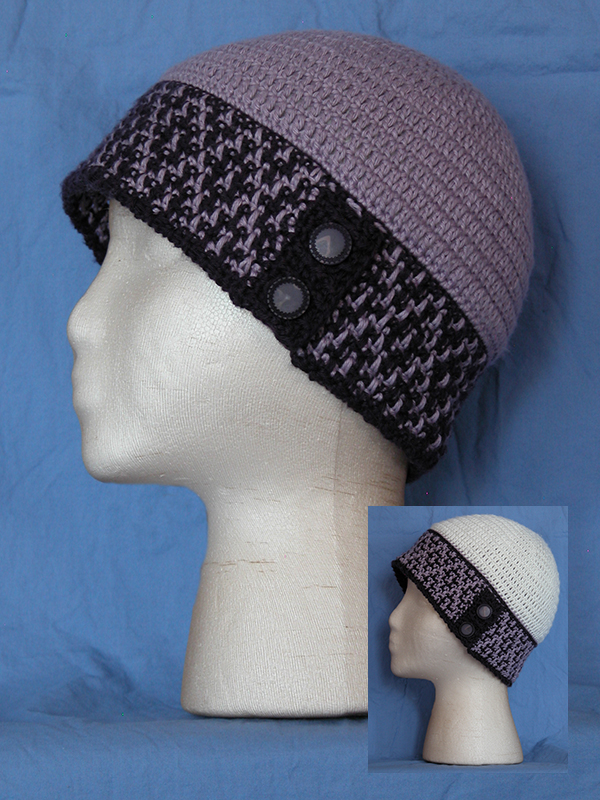 Keep extra warm in cold weather with the reversible buttoned neck warmer, hat and ear warmer. The versatile neck warmer and ear warmer can be buttoned on either side for a different look. The crown of the hat is double thickness, making it both reversible and extremely warm. The unique reversible design makes one color more prominent on each side. It is not as complicated as it looks (check out the Free Patterns page for patterns to try out this technique)!