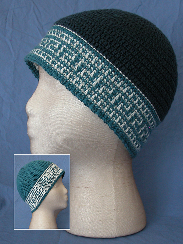 Dress up for warmth with this reversible Celtic-Inspired Scarf Set. The crown of the hat and palm-section of the wrist warmers are double thickness, making them both reversible and extremely warm. The unique reversible design makes one color more prominent on each side. It's not as complicated as it looks (check out the Free Patterns page for patterns to try out this technique)!