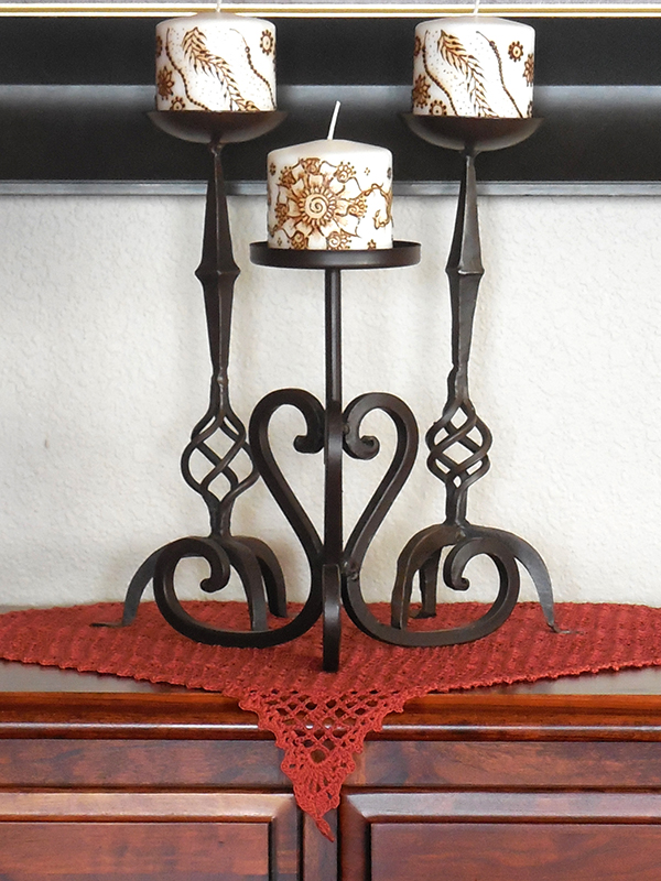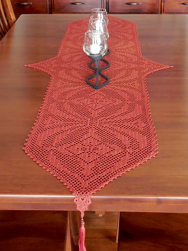 Update your décor with this Celtic-inspired table set including a table runner, centerpiece, and antimacassars for your chairs. This design is creating using a hybrid of corner-to-corner and filet crochet techniques.