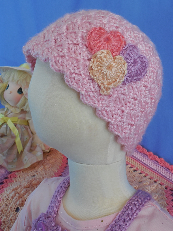 Sweetheart Hat (circumference): Newborn - 12-1/4", 6 Mo - 14-3/4", and 12 Mo - 17"