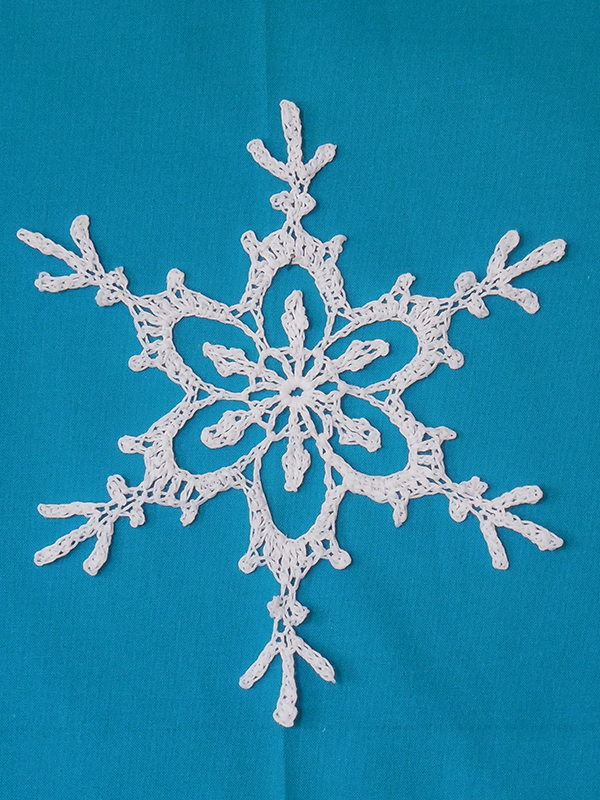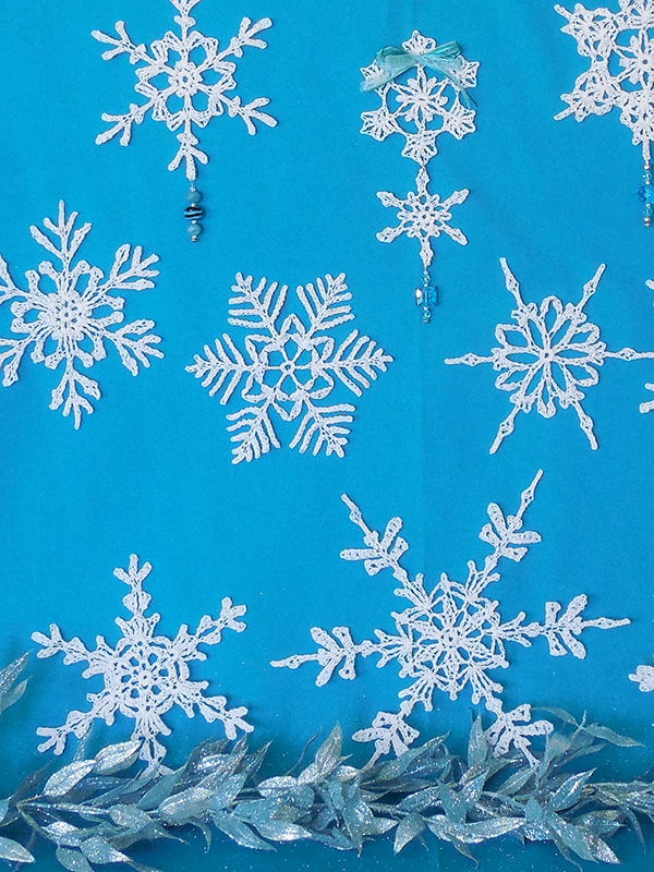 All snowflakes were created using white or teal crochet thread, size 10, and a size 8 (1.50 mm) steel crochet hook.
