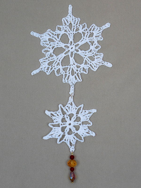 All snowflakes were created using white crochet thread, size 10, and a size 8 (1.50 mm) steel crochet hook.