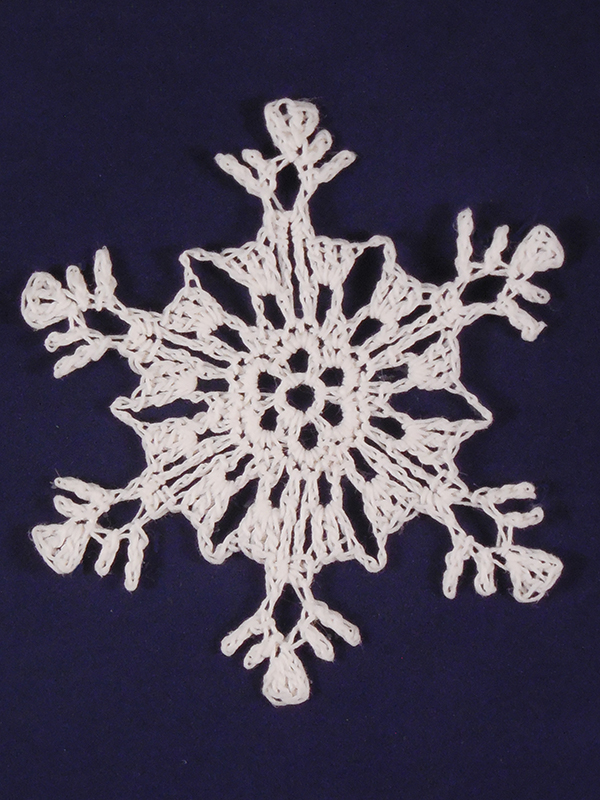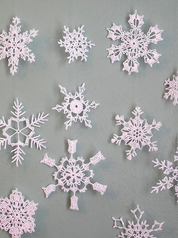 All snowflakes were created with white crochet cotton, size 10, and a size 8 (1.50 mm) crochet hook.