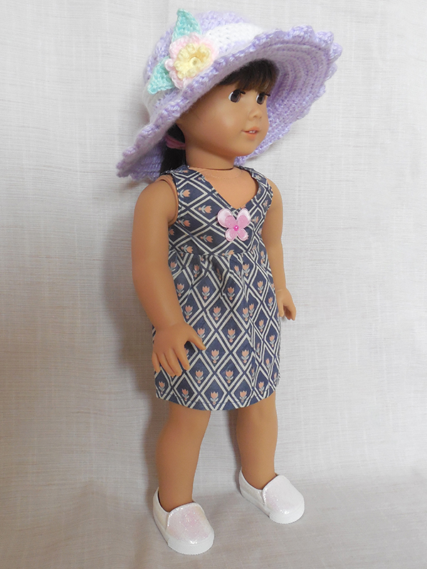 This adorable set includes the May Flowers Afghan with small flowers at the corners of each connect-as-you-go flower motif, a coordinating Flowery Sun Hat sized for your newborn to 12 month old, a Baby Doll Basket with blanket, and a matching hat for your American Girl doll. This set is fifth in a series of baby afghan sets using a hybrid of corner-to-corner and filet crochet techniques, with a touch of patchwork thrown in to enhance the design.