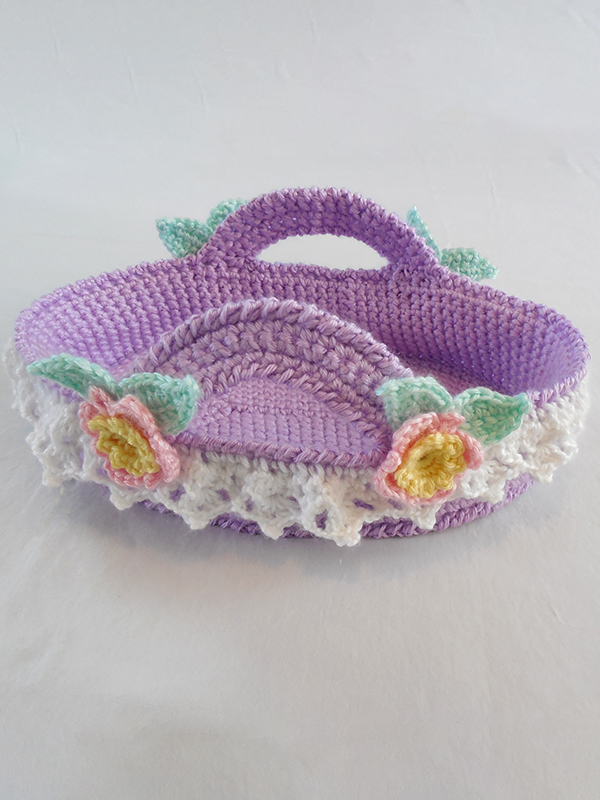 Baby Doll Basket: Base - 12" long x 8" wide; Side - 3" high (5½” to top of handles)