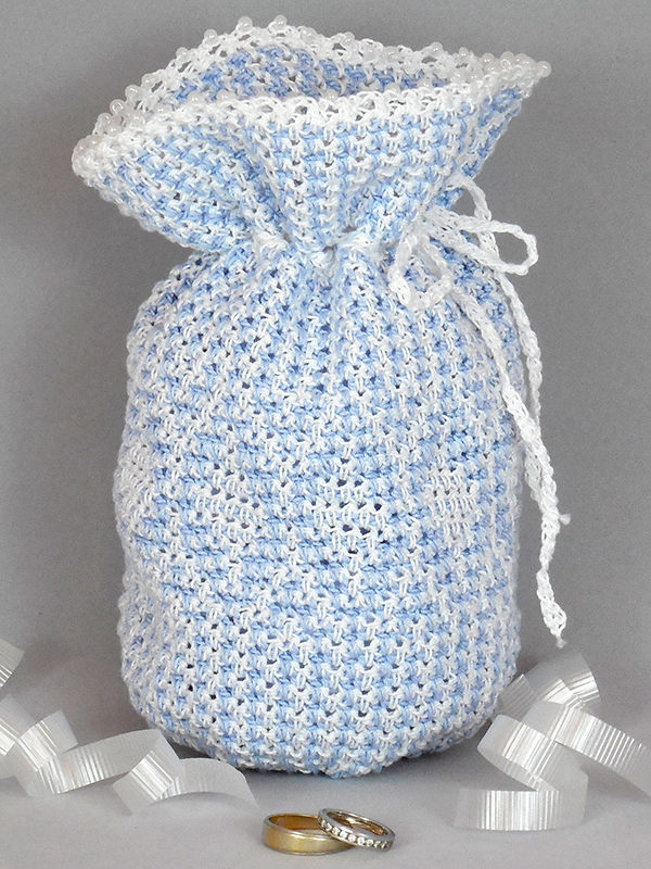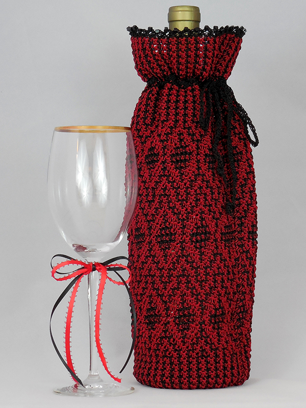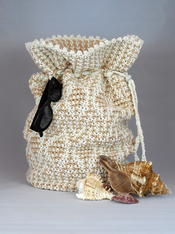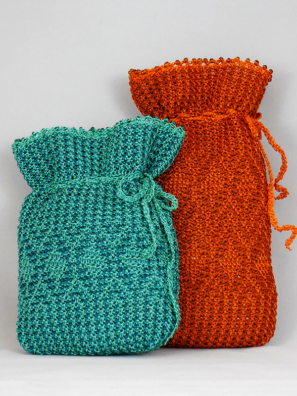 Create a reversible pouch in four styles: a wine bottle gift bag, beach tote, wedding gift bag, or small pouches in two sizes. All items begin with either a circular or oval base and are completely reversible. This reversible technique makes one color more prominent on each side. It is not as complicated as it looks (check out the Free Patterns page for patterns to try out this technique)!
