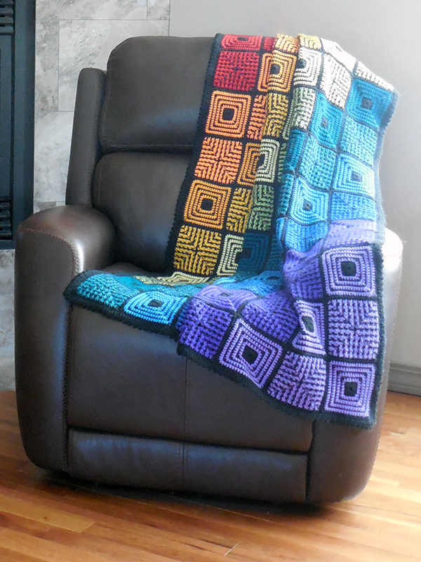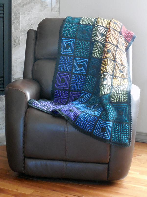 Rainbow Squares Afghan: 41-1/2" wide x 56-1/2" long