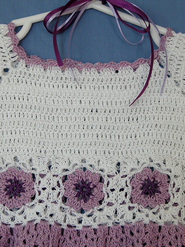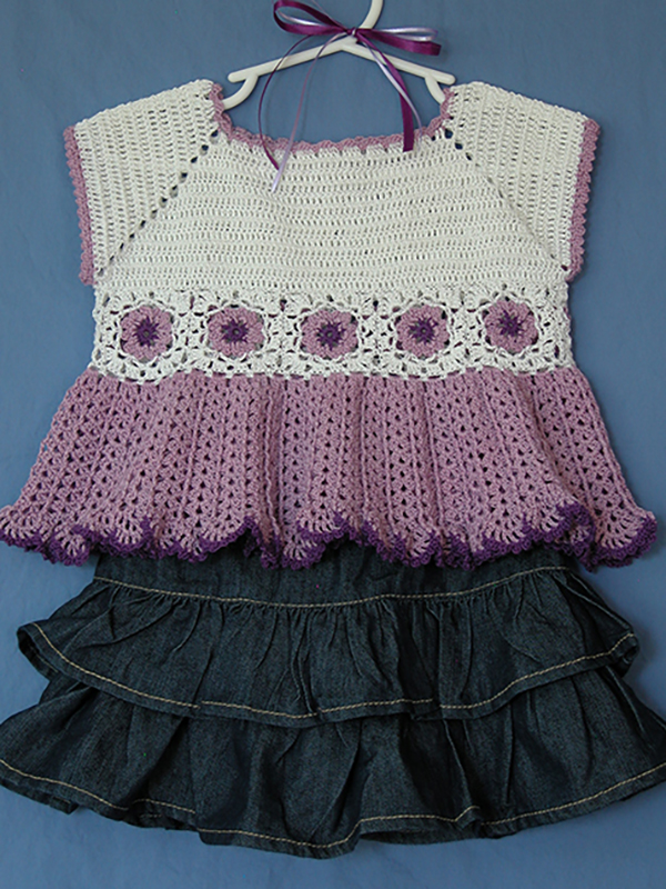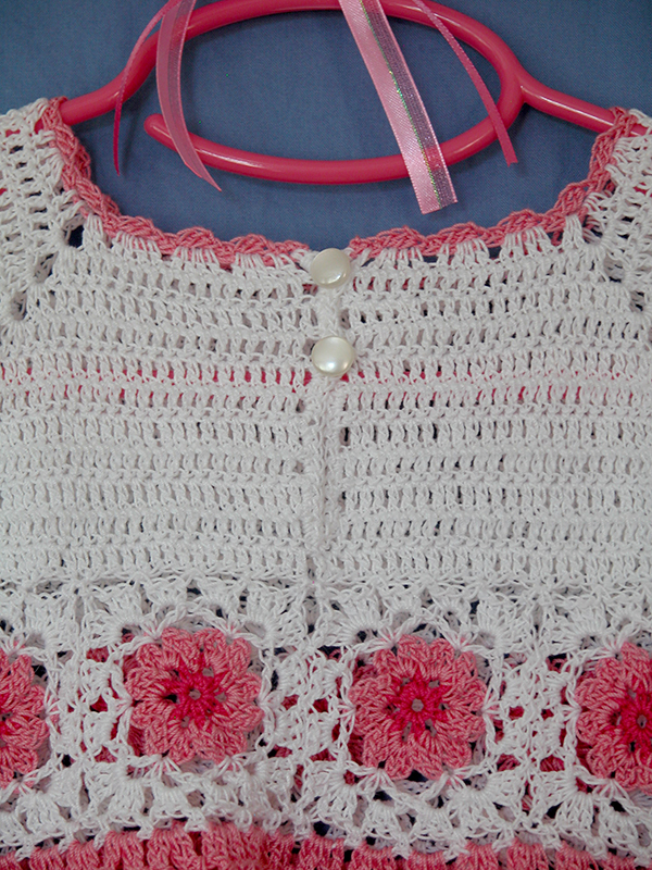 Make these adorable matching dresses for your daughters in sizes Newborn to 6/7. Instructions for a sleeveless top option are also provided. The dresses/tops are worked in one piece from the neck down and button in the back. No sewing required!