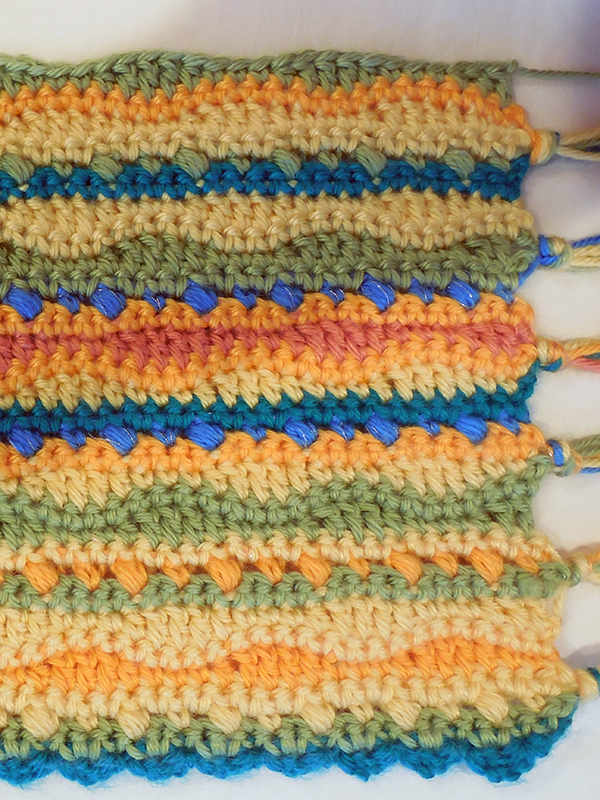 Make this comforter with soft worsted weight yarn in twelve colors and a size G (4.25 mm) crochet hook. Approximately 35 yds. (32 m) are needed for each day/row.