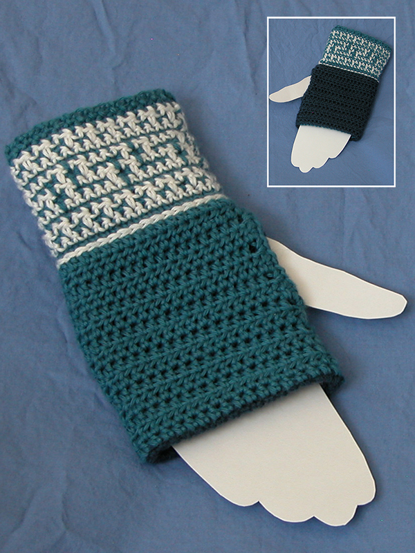 Dress up for warmth with this reversible Celtic-Inspired Scarf Set. The crown of the hat and palm-section of the wrist warmers are double thickness, making them both reversible and extremely warm. The unique reversible design makes one color more prominent on each side. It's not as complicated as it looks (check out the Free Patterns page for patterns to try out this technique)!