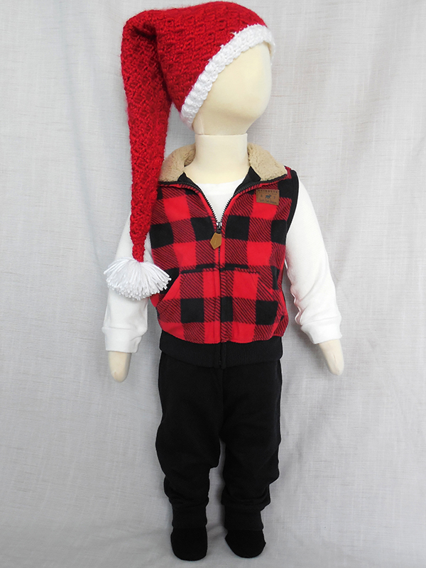 Elf Hat (circumference/length): Newborn - 12-1/2"/14", 6 Mo - 14-3/4"/16-1/2", 12 Mo - 17"/19"
