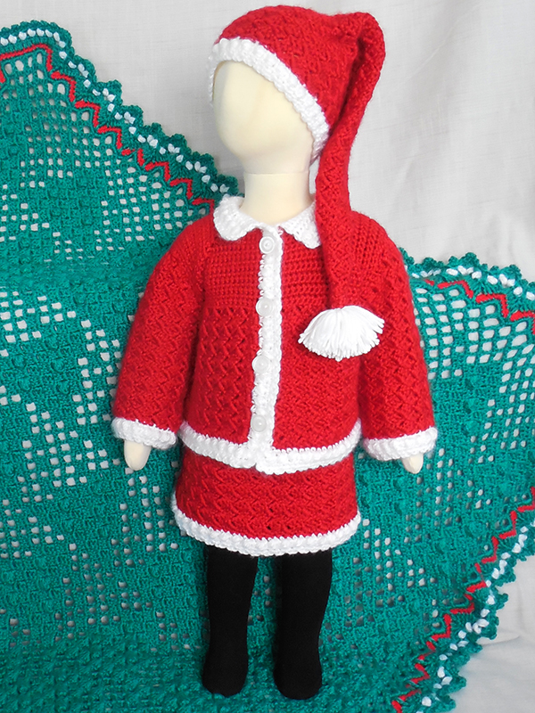 This festive set includes the Christmas Tree Afghan with a tesselation of positive and negative Christmas trees and a border reminescent of cranberry and popcorn gardlands; a Holiday Jacket and Skirt, and an Elf Hat, sized for your newborn to 12 month old. All models incorporate a corner-to-corner style technique to create the design. This set is twelfth in a series of baby afghan sets using a hybrid of corner-to-corner and filet crochet techniques, with popcorn stitches added to enhance the design. Instructions are also included to make this holiday outfit for your American Girl doll!