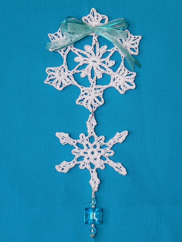 All snowflakes were created using white or teal crochet thread, size 10, and a size 8 (1.50 mm) steel crochet hook.