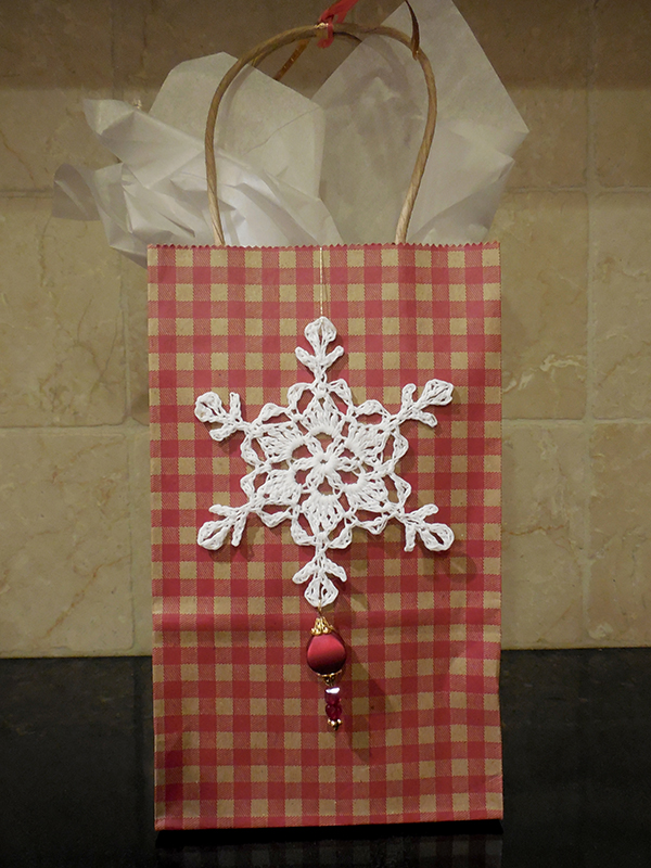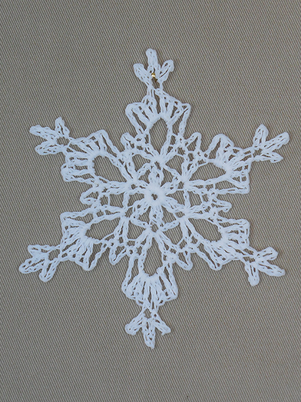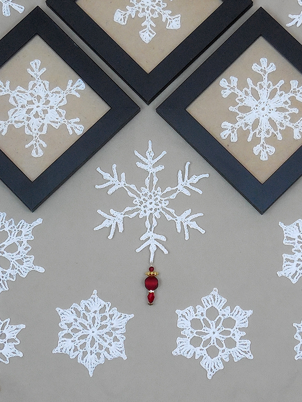 All snowflakes were created using white crochet thread, size 10, and a size 8 (1.50 mm) steel crochet hook.
