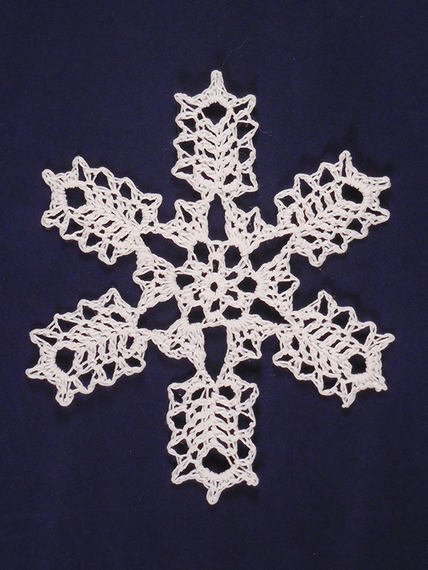 All snowflakes were created with white crochet cotton, size 10, and a size 8 (1.50 mm) crochet hook.