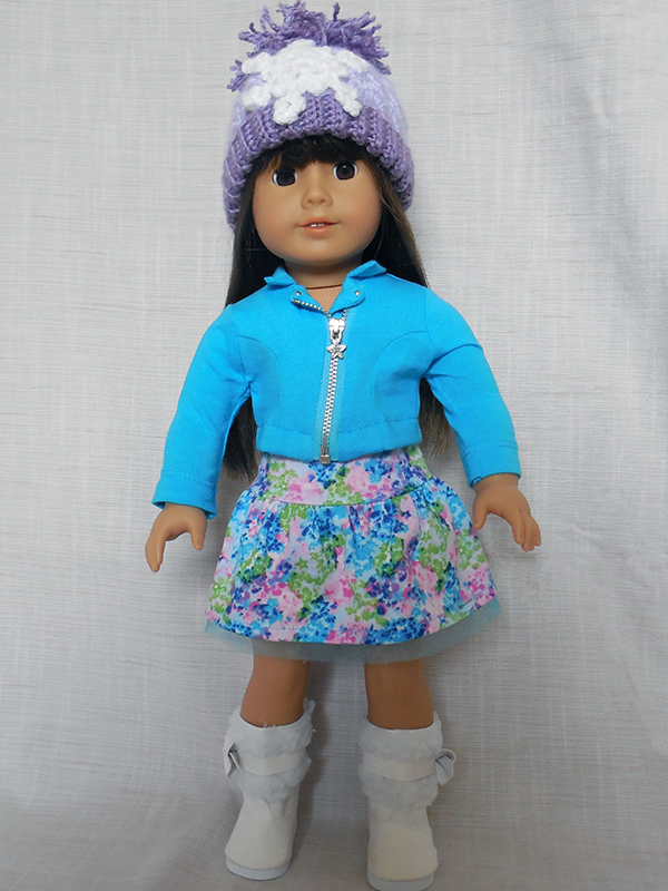 The afghan, pillow and baby hat were all created using soft worsted weight yarn and a size G (4.25mm) crochet hook. The American Girl hat was created using DK weight acrylic yarn and a size E (3.50 mm) crochet hook.