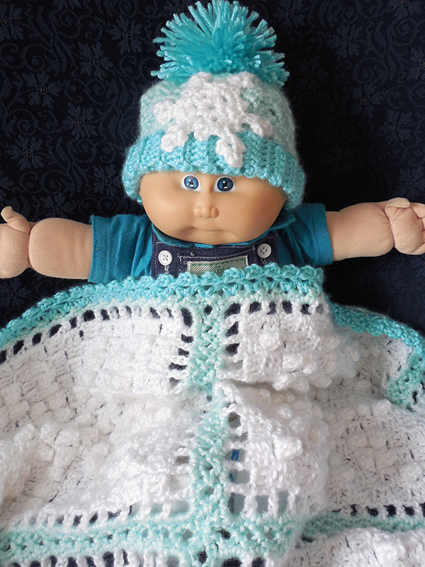 This adorable snowy set includes the January Snow Afghan, a matching Snowflake Pillow and the Snowy Pom-Pom Hat (for newborn to 12 months). Afghan motifs are worked in a corner-to-corner style technique and joined together as-you-go with the border round. This set is the first in a series of baby afghan sets using a hybrid of corner-to-corner and filet crochet techniques, with a touch of patchwork thrown in, and popcorn stitches added to enhance the design.