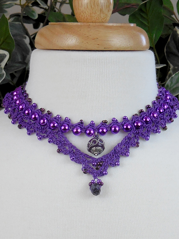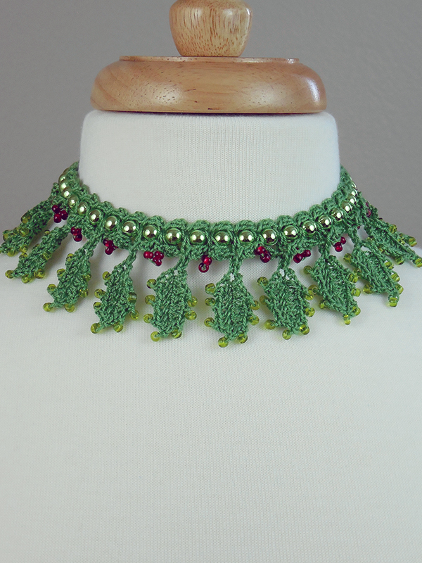 All models were created using crochet cotton, size, 10, a size 7 (1.65mm) steel crochet hook and 6.25 mm beaded garland. Additional materials include 6/0 and 2/0 seed beads, metal head pins and a variety of assorted size beads for embellishments.
