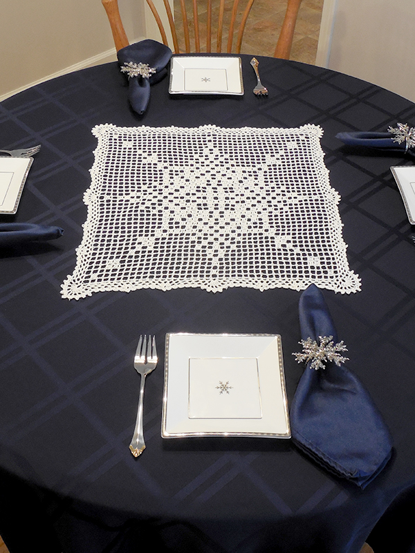 This beautiful square snowflake doily, inspired by Japanese Notan Art, is made using a corner-to-corner style technique. Use it as a centerpiece for a lovely winter table, or create a unique room decoration by sewing it to a pillow front.