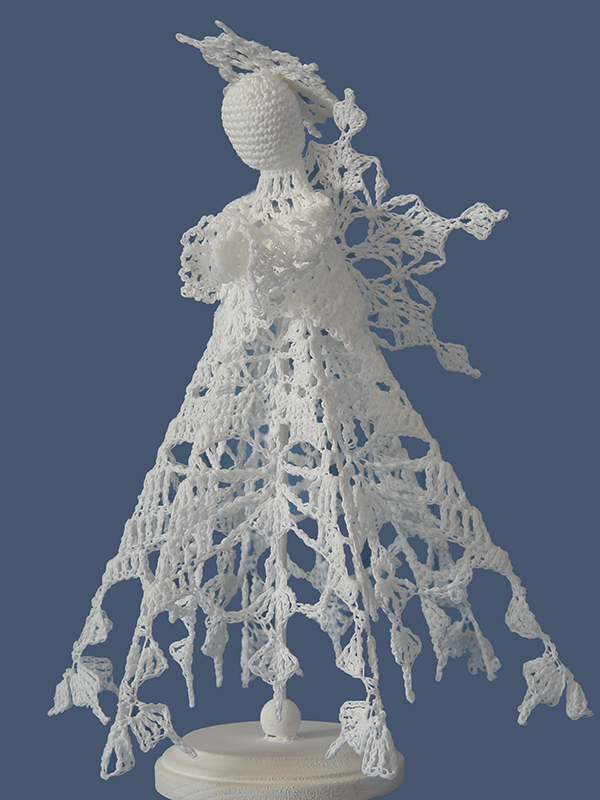 The model was created with white crochet thread, size 10, and a size 7 (1.65 mm) steel crochet hook.