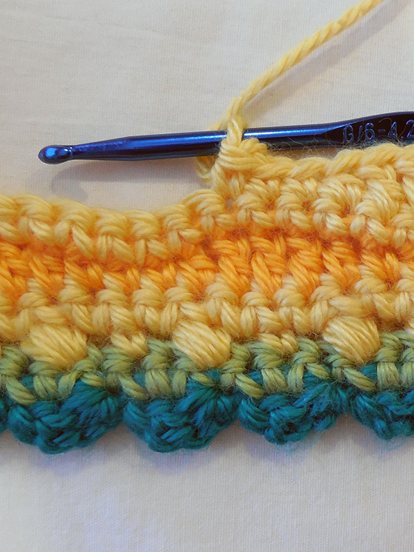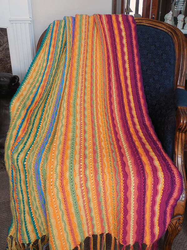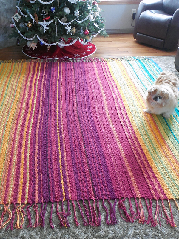 Make this comforter with soft worsted weight yarn in twelve colors and a size G (4.25 mm) crochet hook. Approximately 35 yds. (32 m) are needed for each day/row.