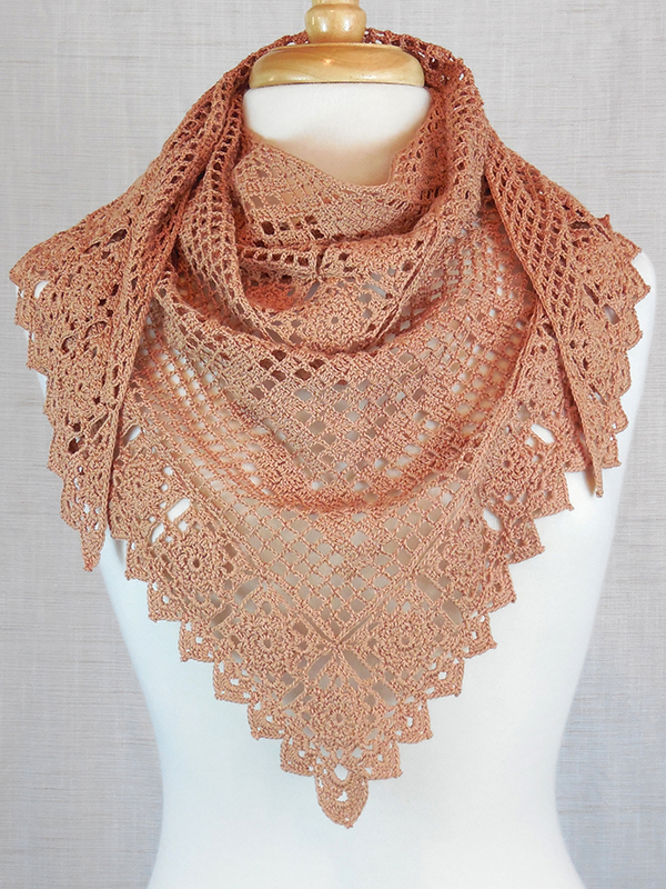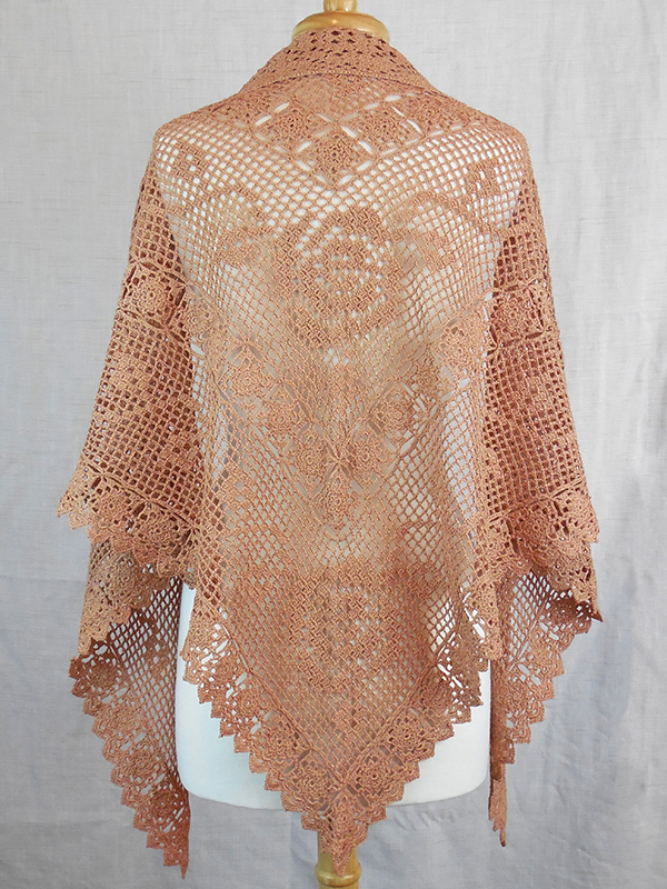 The model was created using light copper crochet thread, size 10, and a size 8 (1.40 mm) steel crochet hook.