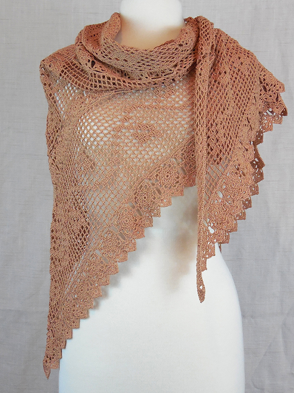 This beautiful Vintage Rose shawl combines small rose motifs, connected using a join-as-you-go method, with large roses and leafy vines created using a hybrid of corner-to-corner and filet crochet techniques. This shawl is offered in two adult sizes, and one child size, making it a great choice for a mother-daughter shawl.
