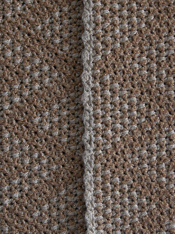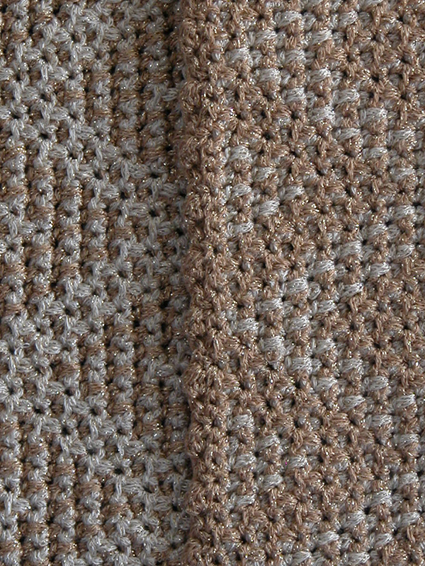 Both models were created by alternating rows of gold and cream metallic sport weight yarn and using a size G (4.00 mm) crochet hook.